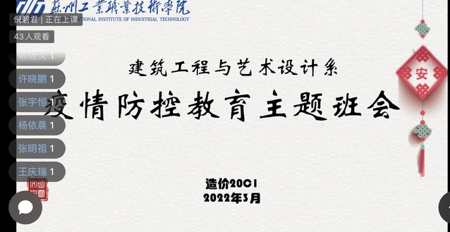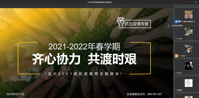 近期,建艺系各年级、各班级利用中午、晚上等课余时间,召开“齐心协力共渡时艰”防疫抗疫线上主题班会。