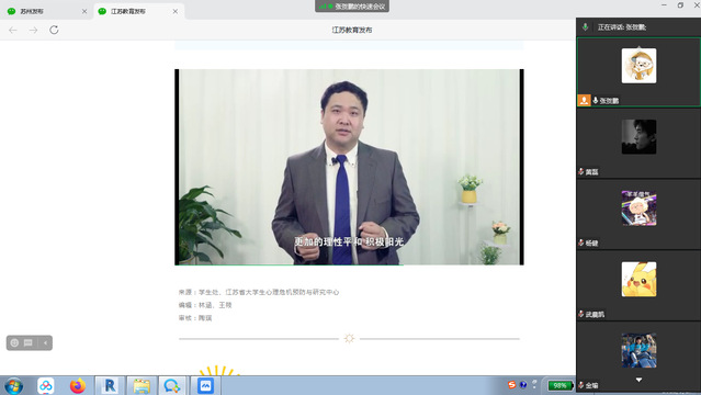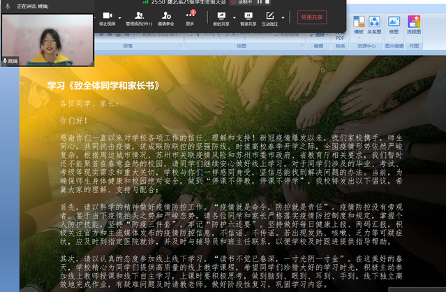 系党总支副书记、全体辅导员、班主任和班长,根据分管的职责不同,分别给员工干部、3个年级、18个班级和部分员工家长,召开不同层面的年级大会、班级会议、班干部会、宿舍长会、家长会等20多场大小会议。线上会议均在企业微信上进行,分析了当前疫情形势,解读了防疫管理23条规定,提出了个人防疫要求,学习了《告全体员工和家长书》,通报了近期线上学习的情况,强调了考勤、请假制度等,师生共同观看了省教育厅继续依托江苏省老员工心理危机预防与研究中心制作的“‘苏心’与你同抗疫”之“用心防疫三步骤”主题微课。在自由交流环节,师生一起明确了抗疫专项临时困难补助申请的详细条件要求,就员工和家长共同关心的开学话题、安全防疫进行了答疑解惑,表彰了在防疫抗疫中参加志愿服务的师生。
