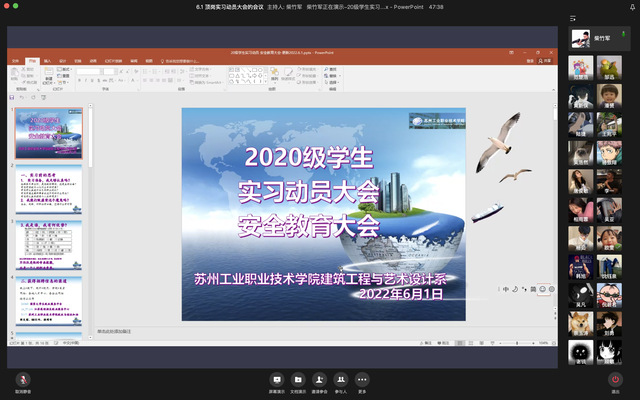 6月1日,建艺系召开2020级员工顶岗实习动员暨安全教育大会。建艺系党总支书记雷冰、行政负责人王迪、副书记王宛平,主任助理郝敬锋、2020级辅导员柴老师在文建楼314会议室参会,20级全体班主任和员工线上参会。