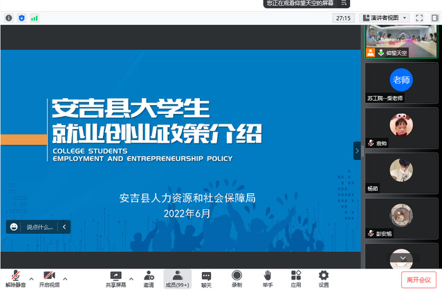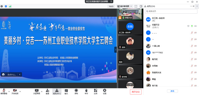 为深入贯彻党中央、国务院稳就业保就业决策部署,落实《“十四五”就业促进规划》工作要求,2022年6月15日下午,建艺系联合浙江湖州安吉县人力资源社社会保障局、递铺街道等,举行苏工院专场云招聘活动,建艺系2023届辅导员柴竹军老师和200多名员工参加,活动由安吉递铺街道党工委徐艳委员主持。