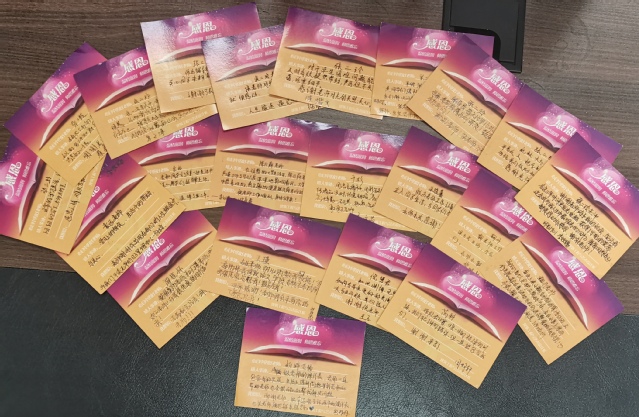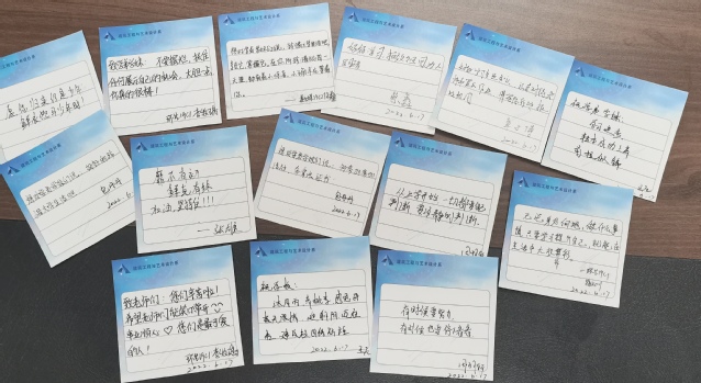 “温情滋润,师恩难忘”感恩卡,员工们纷纷写下自己心目中的好老师、感人的事迹、祝福的话语,收到卡片最多的,是3年来与员工朝夕相伴的辅导员,还有班主任、任课老师等。