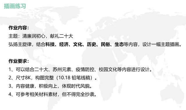 陈老师结合当时数媒22C1正在开展的《造型设计》课程,将廉洁主题创作融入到课程作业,进行辅导参赛。授课时,陈老师分析了她辅导过的往届员工廉洁主题参赛作品(员工廉洁作品曾获第八届全国高校数字艺术设计大赛国赛二等奖和三等奖),帮助员工进行思考与选题、设计与创作。课堂选题着重要求员工结合苏州元素、时代特征、本年度的重要事件、苏工院LOGO及校训等元素进行设计,以凸显校园文化。对于数媒22C2等其他不能来现场听课的班级同学,利用课余时间进行辅导、插画练习作业批改。《造型设计》课堂和插画社共收到40多份绘画作品,选送优秀作品到系院参赛,多人获奖,陈月萍老师获系“廉风洁雨”活动优秀指导老师奖。
