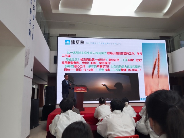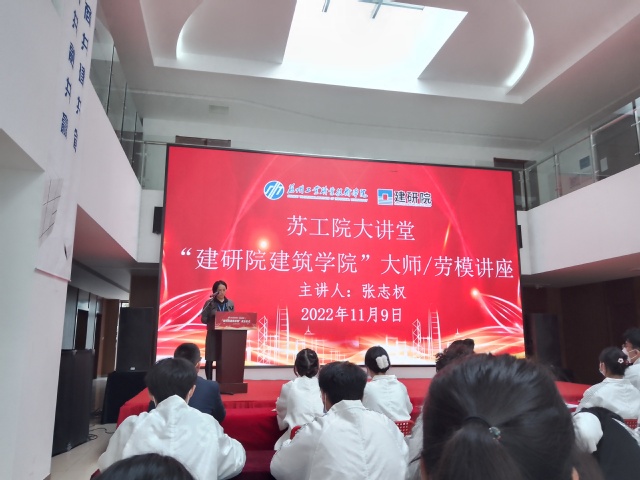 11月9日下午,建艺系在文济楼举办“苏工院大讲堂--劳模进校园”活动,活动由系党总支副书记王宛平主持。系党总支书记雷冰、22级辅导员张二玲老师、22级建工和造价专业40多名员工代表参加。活动邀请到苏州建研院集团院检测板块公司副总经理、苏州市建设工程质量检测中心有限公司副总经理、江苏省五一创新能手、高级工程师张志权先生。