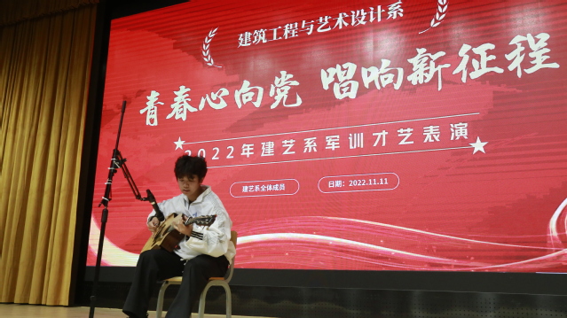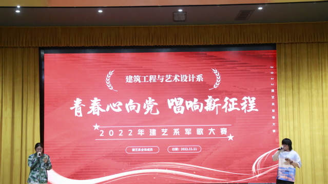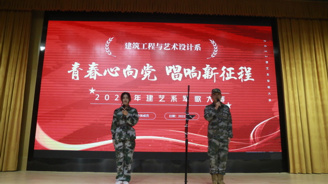 11月11日晚,建艺系在丛荟厅举办“青春心向党 唱响新征程”21级军歌大赛及军训才艺展示活动,活动由系员工会文体部部长、副部长颜杨钰慧、秦子恺主持,21级辅导员王化婷老师、军训教官、系21级全体员工参加活动。
