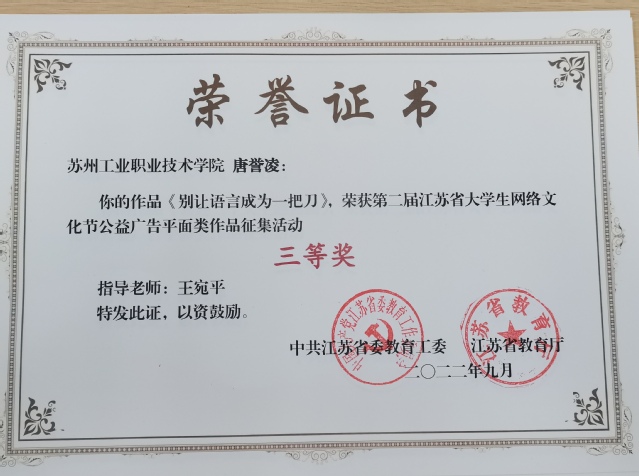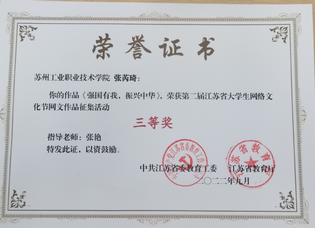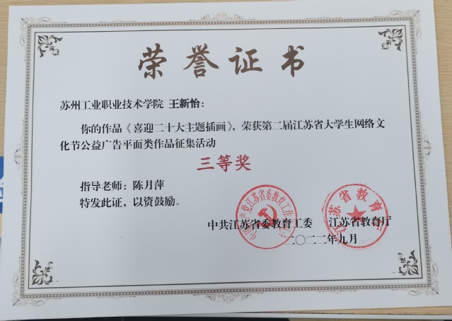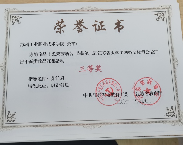 喜报:在第二届江苏省老员工网络文化节作品征集活动中,建艺学子荣获五项奖励。本次活动从今年暑假启动至今,建艺系员工共创作20多项作品,选送10项参赛,五项获奖,硕果颇丰。1.第二届江苏省老员工网络文化节获奖名单.pdf省第二届网络文化节省教育厅获奖通知.doc