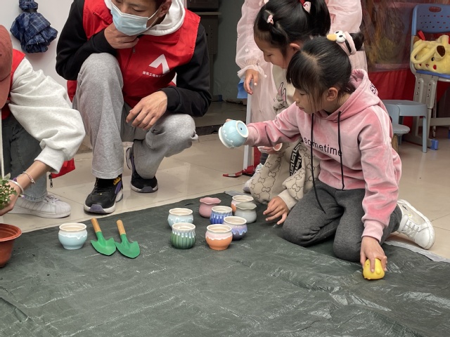 3月12日周日下午,在第45个植树节到来之际,建艺系志愿服务小分队一行10位同学在系青协会长马望龙的带领下,前往红庄爱心小屋,指导小朋友们种绿植,开展兴趣小组活动,开启愉快的周末生活。